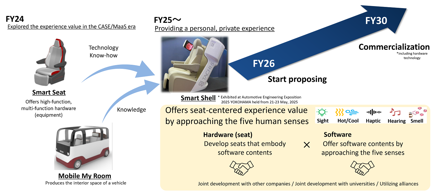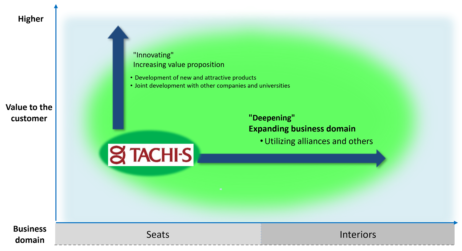 Aiming for increasing added value of seats, we expand business area from “automotive seats” to “seats + interiors”.