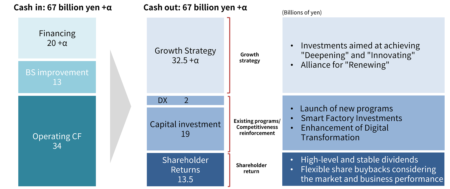13.5 billion yen for shareholder returns, 21 billion yen for capital investment in existing programs and strengthening competitiveness,