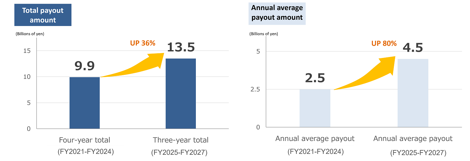 The total amount of payout is expected to be 13.5 billion yen (over three years), a significant increase from the previous record of 9.9 billion yen (over four years).