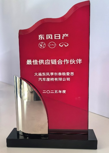 Lear DFM TACHI-S Automotive Seating (Dalian) Co., Ltd. (President: Kong qing chun, hereinafter Dalian DLT), which is a joint company in China of TACHI-S Co., Ltd. (President, CEO&COO: Yuichiro Yamamoto, Headquarter: Ome, Tokyo) received 2025 Best Supplier Award from Dongfeng Nissan Passenger Vehicle Company (hereinafter Dongfeng Nissan) on December 19th 2025.