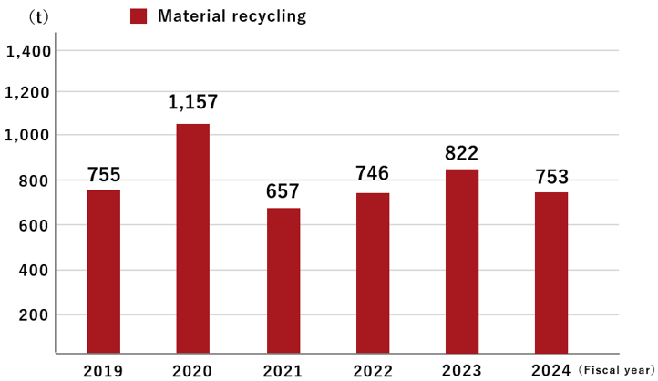 We aim to contribute to the realization of a resource-circulating society by reducing material usage, promoting the use of recycled materials, and utilizing renewable energy.
