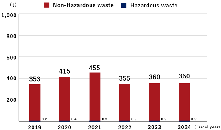 Trends in total waste volumes(TACHI-S business locations in Japan)