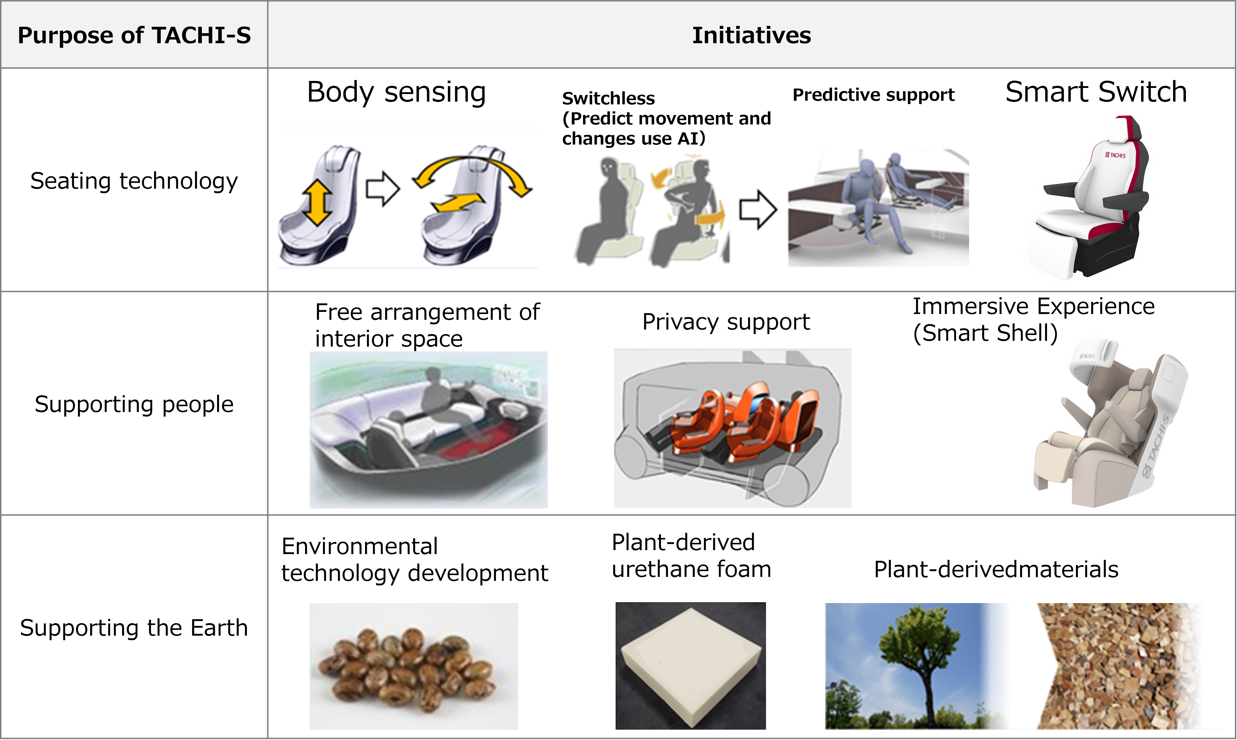 In the design engineering of seats, while taking the balance between those two scenarios into consideration, we actively pursue the development and introduction of new technologies for the light weighting of seats and the enhancement of seat comfort.