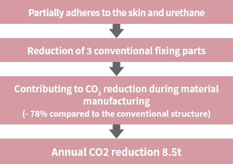 The "Glue Anchor®" is the brand-new method that fastens urethane foam, which is the cushion material for the seat, and the trim cover (skin material) that occupant physically touch on.