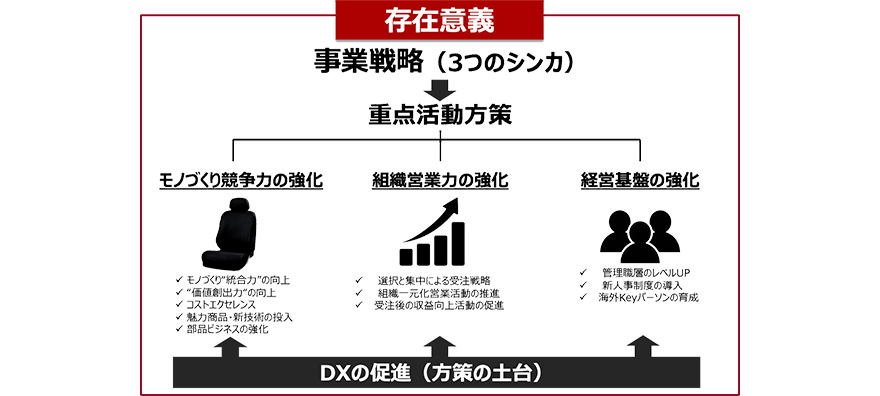 目的: 自動車シートに次ぐ収益の柱を構築し、持続的成長を実現する