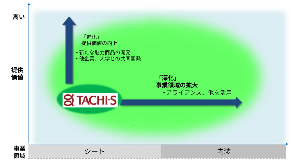 シートの付加価値を高めつつ事業領域をシートからシート+内装に拡げてまいります。