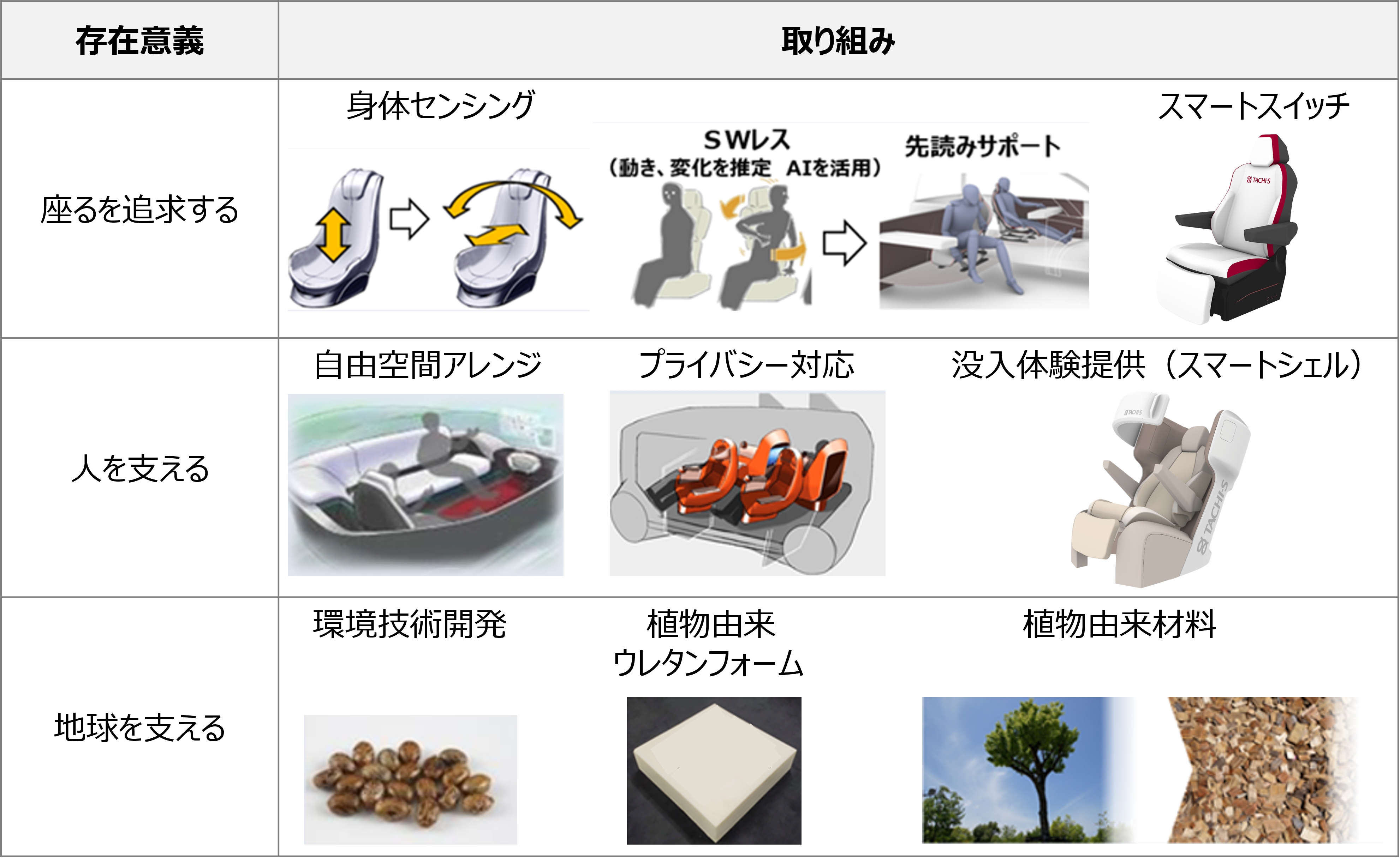 また将来に向け「座るを追求する」「人を支える」「地球を支える」を存在意義として商品・技術の進化の取組みを行っております。